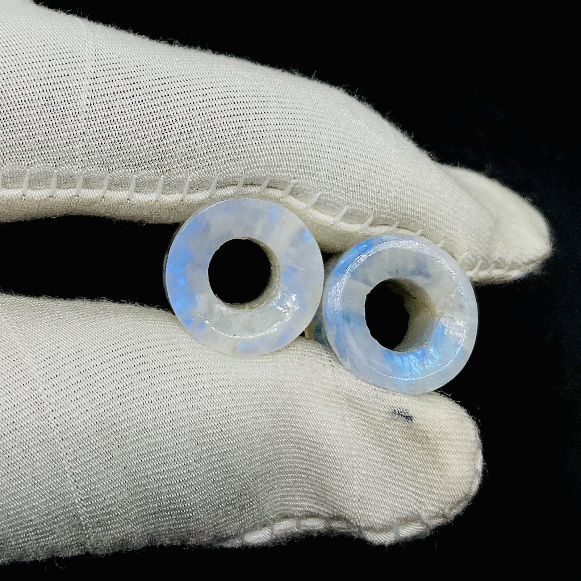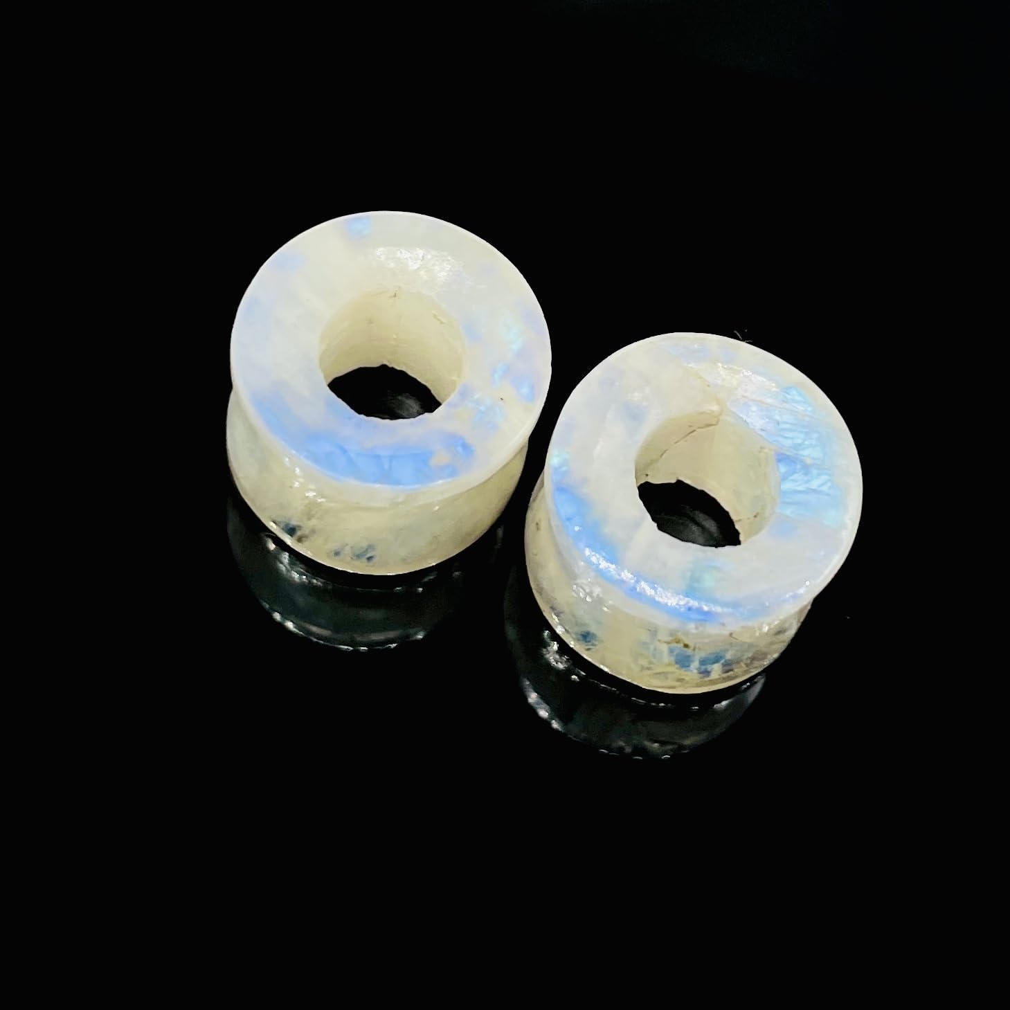 - Unique Handmade Jewelry: BodyJewels007's pair of natural rainbow white moonstone double flared ear gauges/plugs/tunnels.