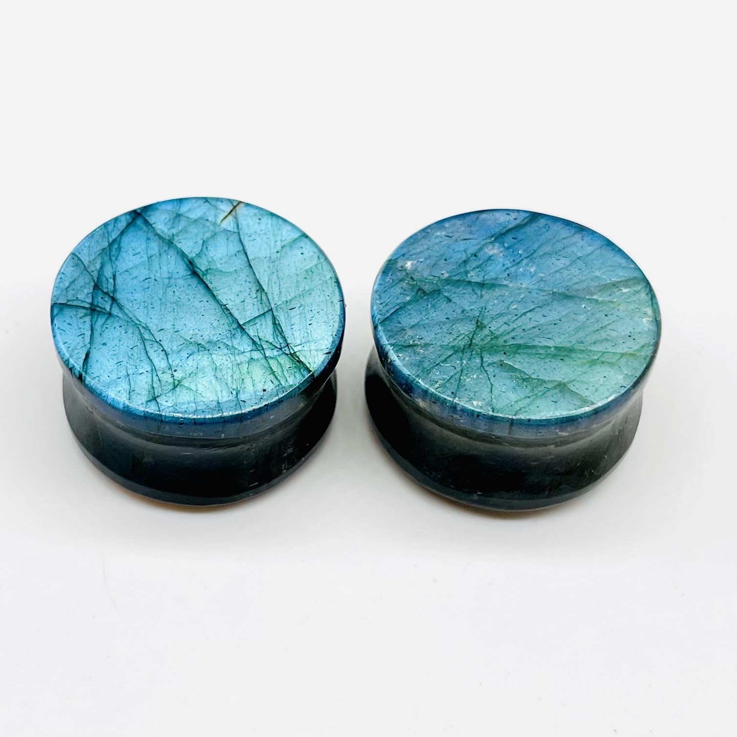 - Handcrafted Gemstone Jewelry: Pair of natural labradorite gemstone ear gauges/plugs, handmade by skilled artisans.