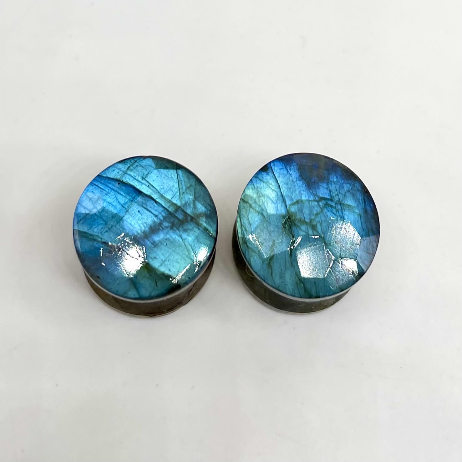 Natural Blue Flash Labradorite Crystal Double Flare Ear Piercing Naga Body Jewelry Round Ear Plugs Gauges Size 8g (3mm) to 1" (25mm) Customized Wholesale Also Available